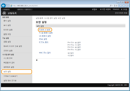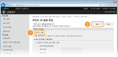 [보안 설정]  [리모트 UI 설정]을 클릭합니다.