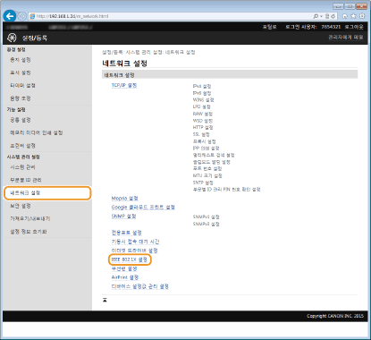 [IEEE 802.1X 설정]을 클릭합니다.