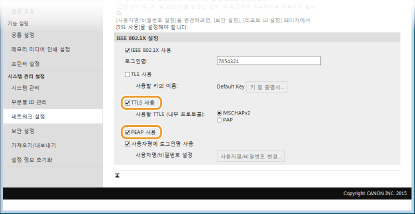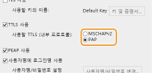 [TTLS 사용] 또는 [PEAP 사용] 확인란을 선택합니다.