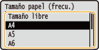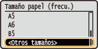 Si cambia con frecuencia el tamaño del papel, puede especificar <Tamaño libre>, para no tener que preocuparse de cambiar el ajuste de tamaño de papel cada vez que imprime.Puede configurar el equipo de modo que muestre un mensaje de error si tamaño de papel especificado en el controlador de impresora no coincide con el tamaño del papel cargado.