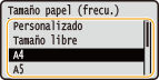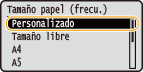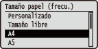 para seleccionar el tamaño de papel, y pulse