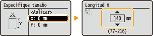 Especifique la longitud de la cara <Y> (más larga).
