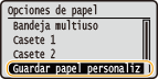 Cuando se selecciona el tamaño de papel para el casete de papel