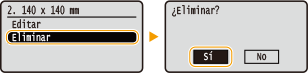 Seleccione el tamaño registrado que desee eliminar, y pulse