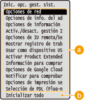 Si se inicializan las opciones de la IU remotaEl PIN de acceso a la IU remota también se inicializa.Tras una inicialización, vuelva a establecer el PIN de acceso a la IU remota. Configuración de un PIN para la IU Remota