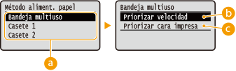 Papel), se aplicará <Priorizar velocidad> al origen del papel. En este caso, debe cargar el papel de la misma forma que cuando se selecciona <Priorizar velocidad> (