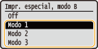 Si la configuración de este elemento no soluciona el problema, establezca <Impresión especial, modo D> en <On>. Impresión especial, modo D