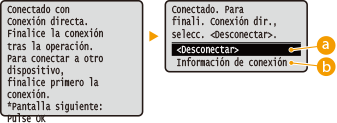 use / para seleccionar <Activar Conexión directa> y pulse .El equipo entra en el estado en que permite conectar el dispositivo móvil al equipo.![]() |