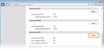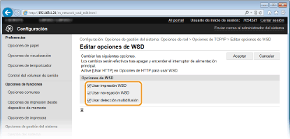 Seleccione la casilla de verificación para imprimir a través de WSD. Cuando no utilice la impresión WSD, quite la marca de la casilla de verificación. [Usar navegación WSD]