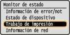 .![]() <Estado de trab. de impresión>Muestra la lista de documentos que se están procesando o a la espera de procesarse.