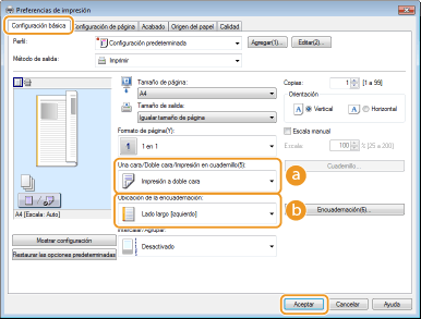 [Una cara/Doble cara/Impresión en cuadernillo]