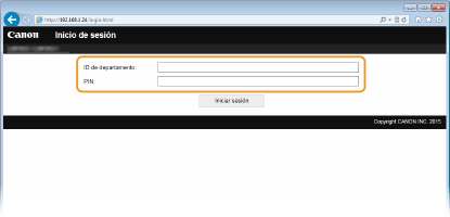 Introduzca el ID adecuado en [ID de departamento] y el PIN en [PIN] (