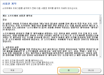 사용권 계약을 읽고 동의하면 [Yes]를 클릭합니다.