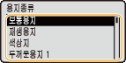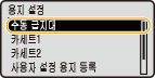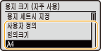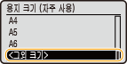 기본 용지 설정이 등록된 후에는 용지를 넣을 때 용지 설정 화면이 표시되지 않고 항상 같은 설정이 사용됩니다. 용지 설정을 변경하지 않고 크기나 종류가 다른 용지를 넣으면 제대로 인쇄되지 않을 수도 있습니다. 이러한 문제를 방지하려면 3단계에서 <용지 세트시 지정>를 선택한 다음 용지를 넣으십시오.