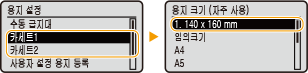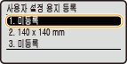 을 사용하여 <사용자 설정 용지 등록>를 선택하고