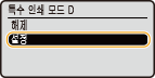 이 항목을 설정했음에도 불구하고 문제를 해결할 수 없는 경우 <특수 인쇄 모드 D>를 <설정>으로 설정하십시오. 특수 인쇄 모드 D