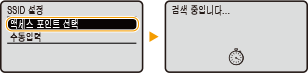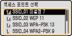 보안 설정무선 라우터를 선택하여 무선 연결을 설정하면 WEP 인증 방법이 <오픈 시스템>으로 설정되거나 WPA/WPA2 암호화 방법이 <자동>(AES-CCMP 또는 TKIP)으로 설정됩니다. WEP 인증에 대해 <공유키>를 선택하거나 WPA/WPA2 암호화에 대해 <AES-CCMP>를 선택하려면 수동 입력 방법을 사용하여 연결을 설정해야 합니다(세부 설정을 지정하여 연결 설정).