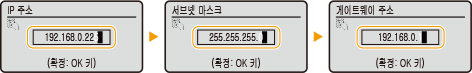 <서브넷 마스크> <게이트웨이 주소>.숫자 키를 눌러 각 설정을 입력하고