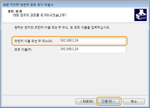 기기의 IP 주소 또는 DNS 이름을 입력하고 [다음]을 클릭합니다.