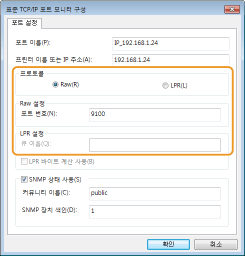 [프로토콜] 아래에서 [Raw] 또는 [LPR]을 선택합니다.