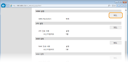 [WINS 설정]에서 [편집]를 클릭합니다.