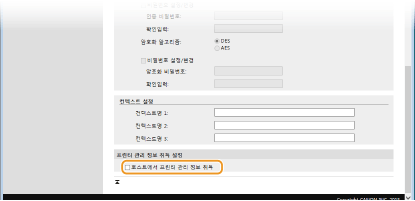 전용 커뮤니티는 관리자가 iW Management Console과 같은 Canon 소프트웨어를 독점적으로 사용하도록 사전 설정된 커뮤니티입니다. 전용 커뮤니티를 사용하려면 확인란을 선택합니다. 전용 커뮤니티를 사용할 필요가 없는 경우 확인란의 선택을 해제합니다.