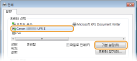 [장치] [인쇄] 사용 중인 프린터 [인쇄]를 누르거나 클릭합니다.이 방법으로 인쇄할 경우, 한정된 수의 인쇄 설정만 가능합니다.