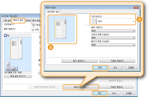 출력물의 여백에 점선이나 이중 선과 같은 테두리를 추가할 수 있습니다.