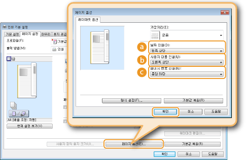 날짜, 로그온 이름 또는 페이지 번호가 인쇄될 때 글꼴 및 글꼴 크기와 같은 서식 설정을 변경할 수 있습니다. 위에 나와있는 페이지 옵션 화면에서 [형식 설정]을 클릭하고 세부 정보를 지정합니다.