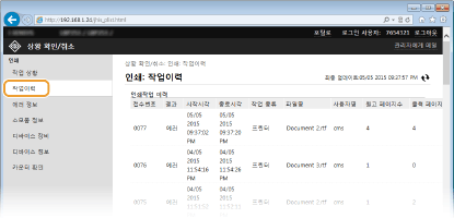 일시 중지된 문서 및 보안 문서에서 [접수번호]를 클릭하면 세부 정보가 표시됩니다. 사용자 이름 및 인쇄된 문서의 페이지 카운트를 확인할 수 있습니다.