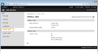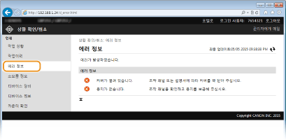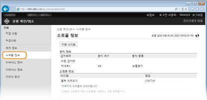 [구매 사이트]가 나타나지 않는 경우조작 패널에서 <리모트 UI에 소모품 구입 버튼 표시>을 <설정>으로 설정합니다.