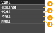 时,将显示可检查正在打印文档的状态的画面,以及本机状态(墨粉盒中的剩余量等)或本机 IP 地址等网络设置信息。