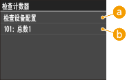 ) 时,显示 <检查计数器> 画面。此画面可查看打印件的计数器数值以及本机的序列号和本机配置。