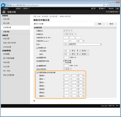选择 [设置每周自动关机定时器] 的复选框,然后设置要关闭电源的时间。