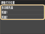 无论哪一个纸张来源,均可使用操作面板设置菜单中的 <打印机设置> 调整所有打印作业的打印位置。可在 -50.0 至 +50.0 mm 范围内以 0.5 mm 为增量调整垂直/水平方向的打印位置。
