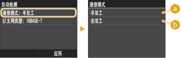 轻触 <半双工> 或 <全双工>。![]() <半双工>交替发送和接收通信数据。当本机通过半双工连接至网络设备时选择此项。