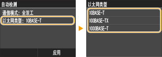 选择以太网类型。![]() ![]() 当 <通信模式> 设置为 <半双工> 时,无法选择 <1000BASE-T>。