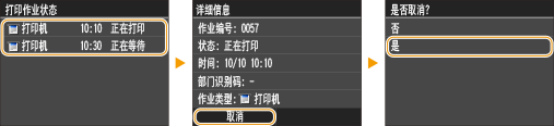 从远程用户界面取消从远程用户界面的 [作业状态] 页面可以取消打印:查看打印文档的当前状态