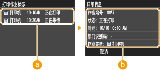 ![]() <打印作业状态>显示正在处理或等待处理文档的列表。