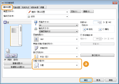 打印多份多页文档时,选择 [分套] 可按照页序进行整套打印。此功能适用于准备会议或演讲的分发材料。