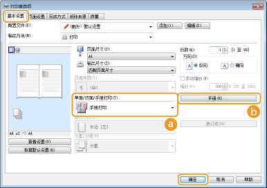 对于某些尺寸和类型的纸张,可能无法使用手册打印。可用于双面打印的纸张也可用于手册打印。请参阅纸张。