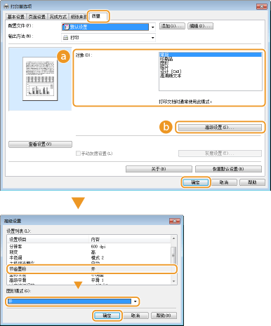 可以指定各文档类型是否启用墨粉节约设置。为 [对象] 中列出的各文档类型指定墨粉节约设置。