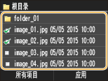 ![]() ![]() 如果在轻触 <所有项目> 前选择了文件,您将只能选择相同格式的文件。
