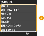 时所显示的设置即为默认设置。如果更改这些默认设置以符合您频繁执行的操作,可以省去每次打印时指定相同设置的麻烦。
