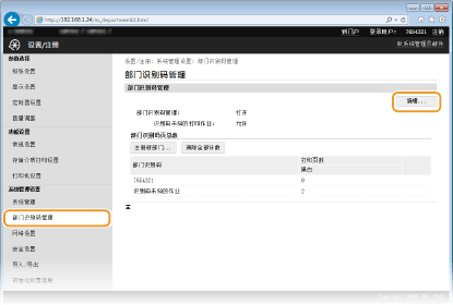 编辑已注册部门识别码的设置|