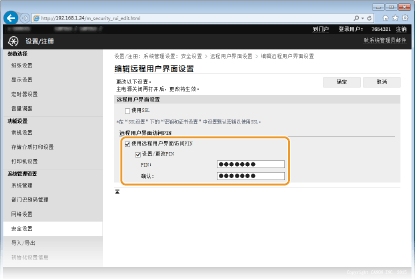 选中 [使用远程用户界面访问PIN] 复选框,然后指定 PIN。