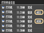 如果由于错误而打印不成功,打印日志画面将显示三位数组成的错误代码。检查以下内容找出各错误代码的原因及解决办法。