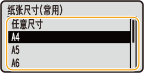 如果经常更改要装入的纸张尺寸,可指定 <任意尺寸>,这样省去了每次打印要更改纸张尺寸设置的麻烦。可进行设置,当打印机驱动程序中设置的纸张尺寸与所装纸张的尺寸截然不同时显示错误消息。