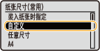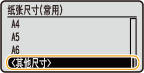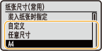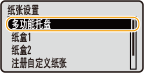 注册了默认纸张设置后,装入纸张时将不会显示纸张设置画面,并且将一直使用相同的设置。如果在未更改纸张设置的情况下装入不同的纸张尺寸或类型,本机可能无法正常打印。为了避免此问题,请在步骤 3 中选择 <装入纸张时指定>,然后再装入纸张。