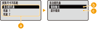 ![]() 设置的可用性本章节中所述的所有打印机设置,除了 <纸张尺寸替换> (纸张尺寸替换)以外,只可进行 PS/PCL 打印。例如,使用 UFR II 打印机驱动程序时,就不需要指定上述设置。